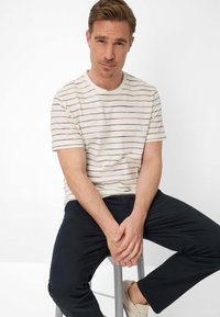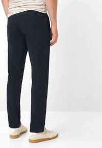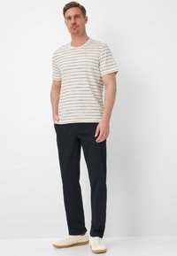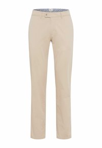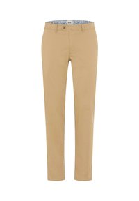 Découvrez l'équilibre parfait entre élégance intemporelle et confort moderne avec le chino STYLE EVANS. Son design classique se distingue par une coupe regular confortable et une silhouette droite intemporelle, complétée par d'élégantes poches françaises à l'avant et des poches passepoilées discrètes à l'arrière. Ce mélange de coton de haute qualité est non seulement agréable sur la peau, mais garantit également la liberté de mouvement nécessaire au quotidien grâce à sa teneur en stretch intégrée. L'armure satinée raffinée confère en outre au pantalon un éclat fin et subtil ainsi qu'un toucher particulièrement doux. Le véritable point fort est l'ajout innovant de kapok, une fibre naturelle qui rend le matériau sensiblement plus léger et favorise un climat de port optimal, faisant de ce pantalon un excellent choix pour différentes plages de température. Pantalon chino coupe regular. Silhouette : droite. Fermeture éclair dissimulée. Poches françaises. Poches passepoilées. Rivets décoratifs. Tour de taille : 90 cm. Poids m² : 190 g. Largeur de jambe : 40 cm. Longueur intérieure de jambe : 82 cm. Hauteur de taille : Normale. Notre mannequin mesure 188 cm et porte la taille 50 / Inch 33 avec les mesures d'article suivantes. Non. Tissu principal : 96% coton, 3% kapok, 1% élasthanne. Instructions d'entretien : Lavage délicat jusqu'à 30°C, ne pas blanchir, séchage en tambour impossible, ne pas repasser à chaud (1 point), nettoyage à sec au perchloréthylène avec restrictions.