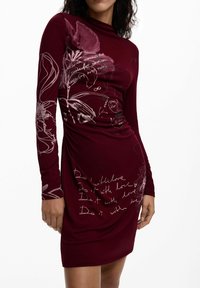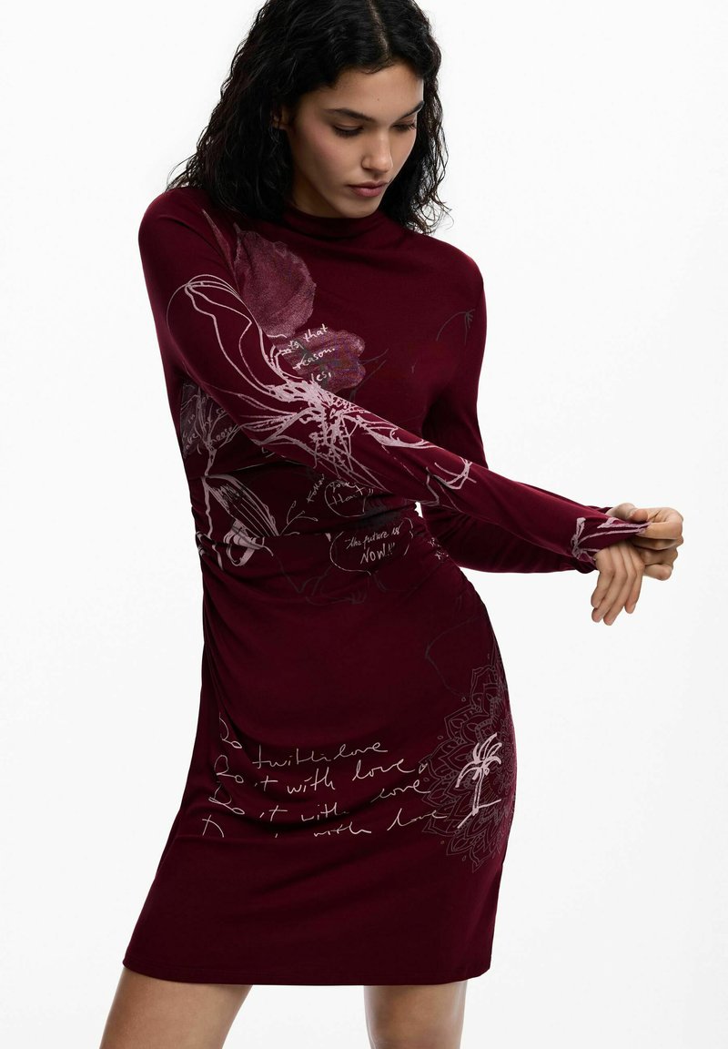 PRINTED LONG-SLEEVE DRESS - Robe fourreau - red