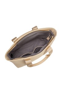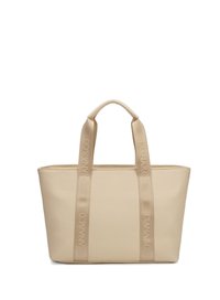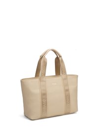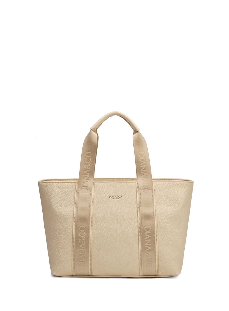 Sac fourre-tout en cuir beige avec deux larges poignées estampillées « DIANA&CO » et un petit logo de marque centré sur le devant.
