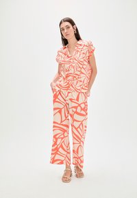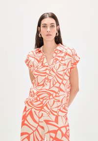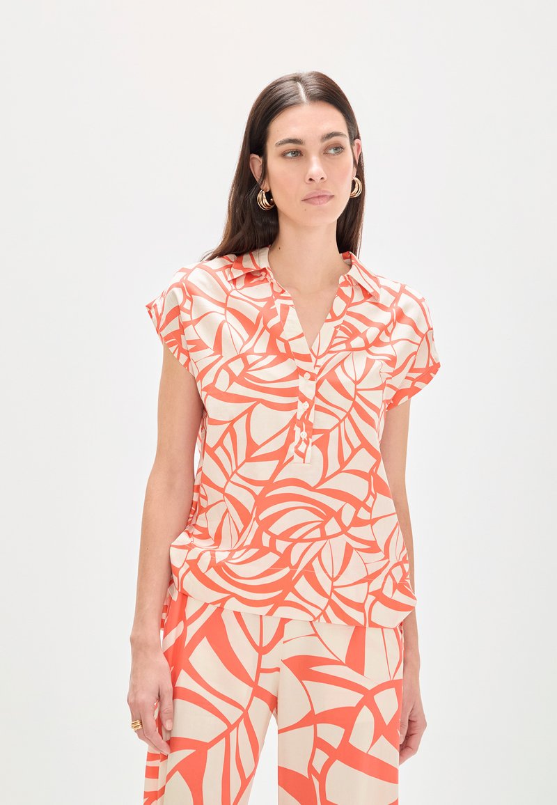 Une blouse à coupe droite et fluide, conçue pour être légère et confortable à porter. Elle se distingue par son col ouvert avec une patte de boutonnage discrète, qui donne de la structure à l'ensemble tout en conservant une sensation décontractée. Les manches courtes permettent une liberté de mouvement et renforcent le style estival de la pièce. L'imprimé graphique anime la silhouette et facilite la création d'un look audacieux, porté seul ou associé à la pièce assortie pour un ensemble harmonieux. Une blouse polyvalente, idéale pour une garde-robe moderne et féminine. Mesures pour la taille S : Longueur des manches : 67 cm. Longueur totale : 65 cm. Largeur du dos : 52 cm. Le mannequin mesure 174 cm et porte une taille S. Le produit est conforme à la taille, nous recommandons d'acheter votre taille habituelle.