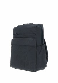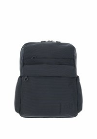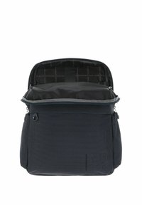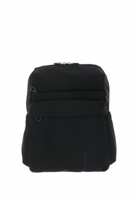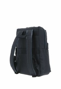 Sac à dos noir texturé avec une poche avant à deux fermetures éclair et des poches latérales supplémentaires. Confectionné en tissu résistant avec un logo discret.