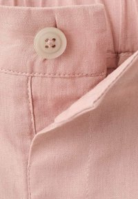 Shorts rose clair en tissu tissé, avec fermeture par bouton, deux poches latérales et une coupe ajustée au toucher lisse.