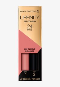Le rouge à lèvre Lipfinity offre une couleur brillante qui dure jusqu’à 24 heures. La surface courbée de l’applicateur permet une application uniforme de la couleur pendant que la pointe offre de la précision. Le Top Coat hydratant fait briller la couleur.