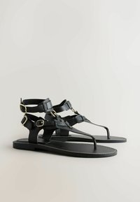 REGULAR FIT - GLADIATOR TOE THONG - Sandales tongs - new black leather
