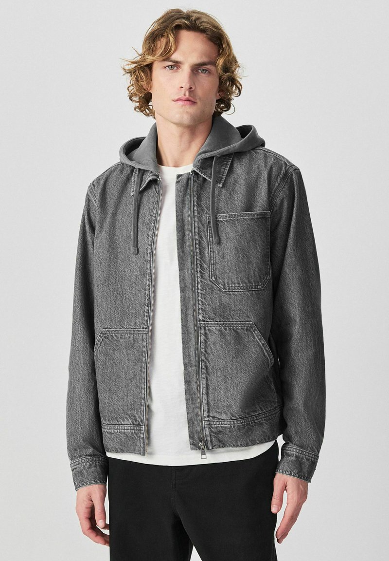 REGULAR FIT - HOODED ZIP THROUGH - Veste en jean - black