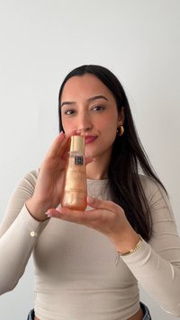 - Caprylic/Capric Triglyceride, Isopropyl Myristate, Parfum/Fragrance, Carthamus Tinctorius (Safflower) Seed Oil, Olea Europaea (Olive) Fruit Oil, Hydrogenated Castor Oil/Sebacic Acid Copolymer, Simmondsia Chinensis (Jojoba) Seed Oil, Macrocystis Pyrifera (Kelp) Extract, Nelumbo Nucifera Flower Extract, Camellia Sinensis Leaf Extract, Aloe Barbadensis Leaf Extract, Synthetic Fluorphlogopite, Tocopherol, Benzyl Salicylate, Tetramethyl Acetyloctahydronaphthalenes, Helianthus Annuus (Sunflower) Seed Oil, Silica, Squalane, Aqua/Water, Glycerin, Sodium Benzoate, Potassium Sorbate, Citric Acid, Limonene, Hexyl Cinnamal, Linalyl Acetate, Linalool, Alpha-Isomethyl Ionone, Pinene, Citronellol, Citral, Anethole, Citrus Limon Peel Oil, Carvone, Benzaldehyde, Terpinolene, Geranyl Acetate, Citrus Aurantium Peel Oil, Rose Ketones, Tin Oxide, CI 77491/Iron Oxides, CI 77891/Titanium Dioxide