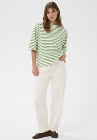 SLINGINA - T-shirt imprimé - white and green stripe