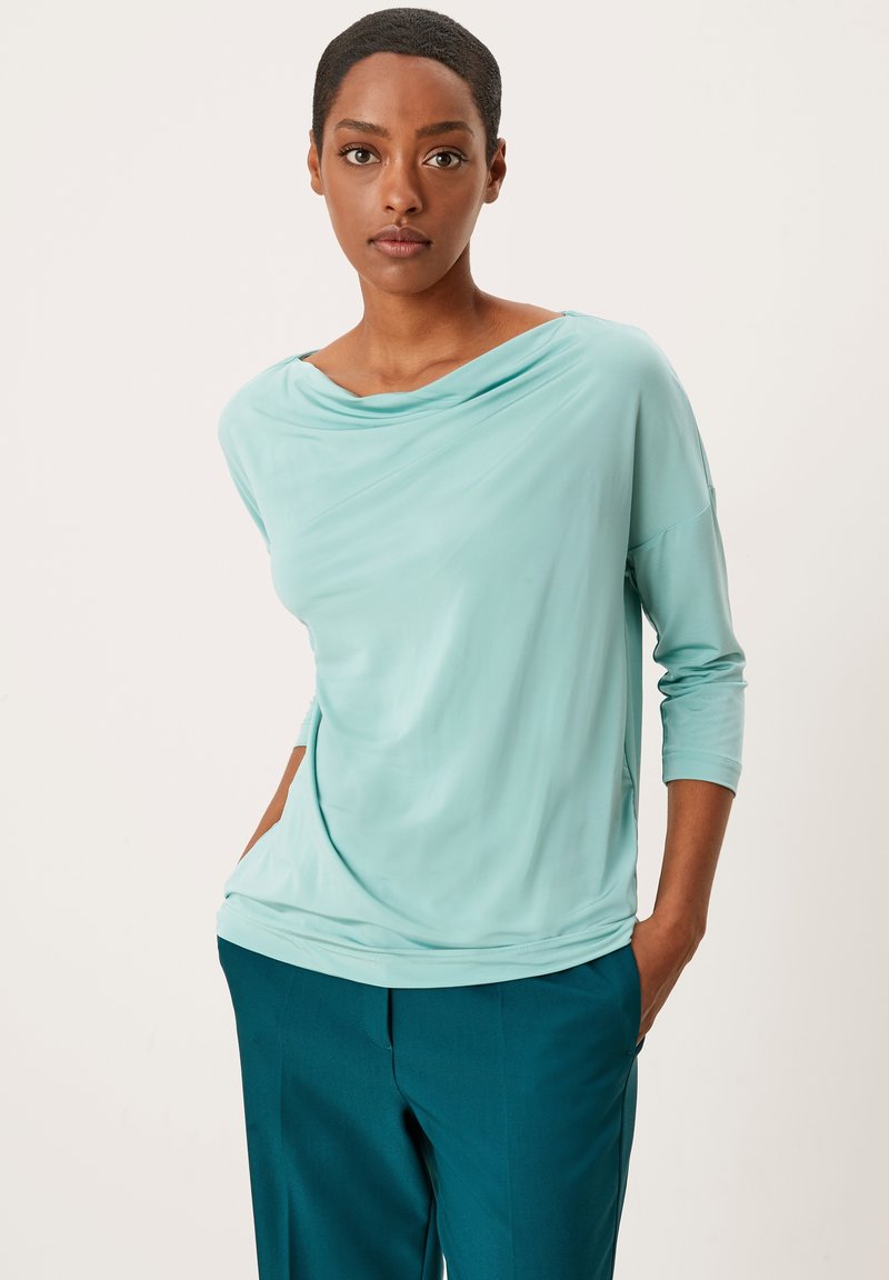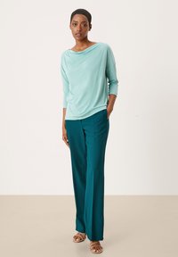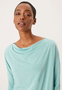 MIT WASSERFALLKRAGEN - Blouse - turquoise