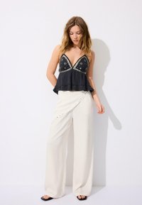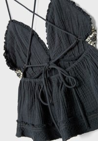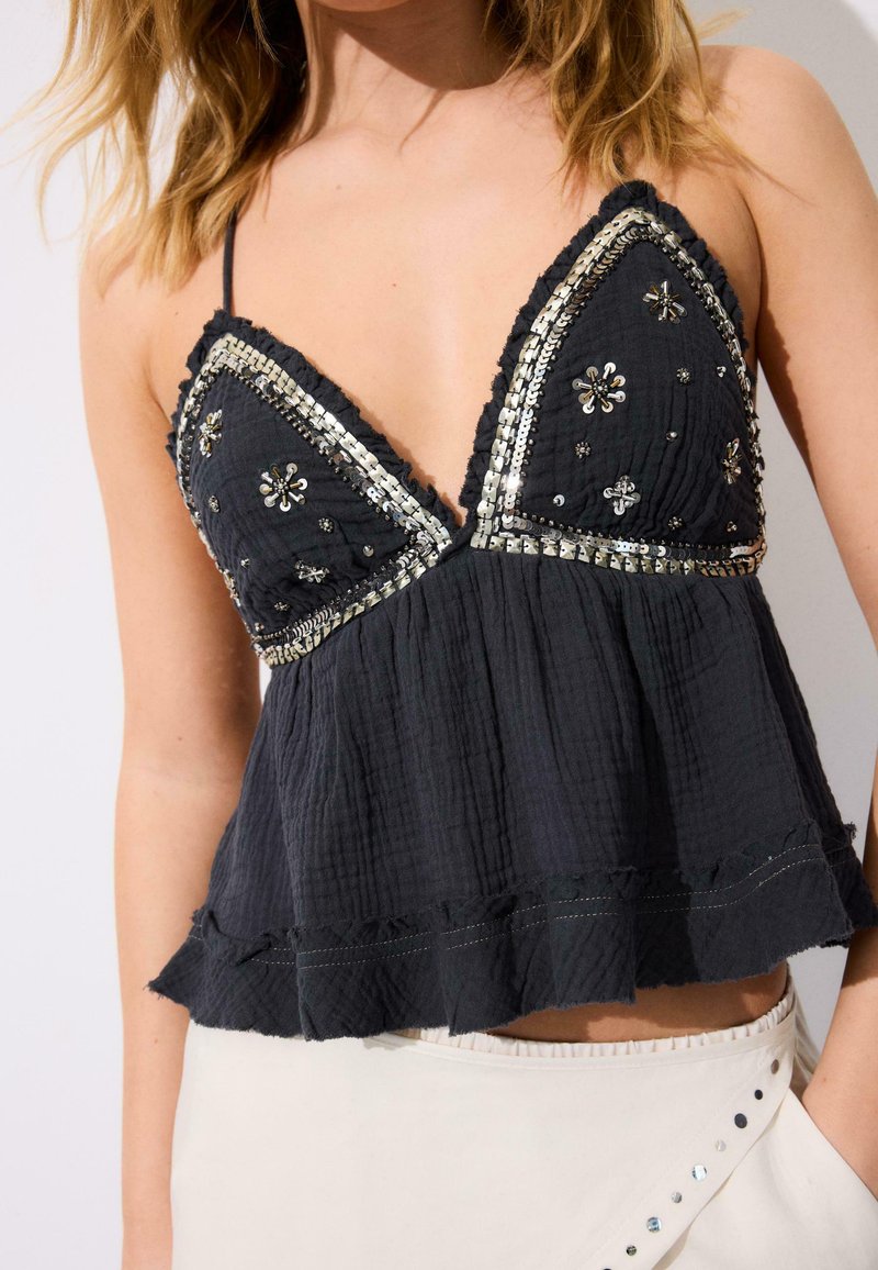 RUFFLED TOP WITH BEADS - Débardeur - dark grey