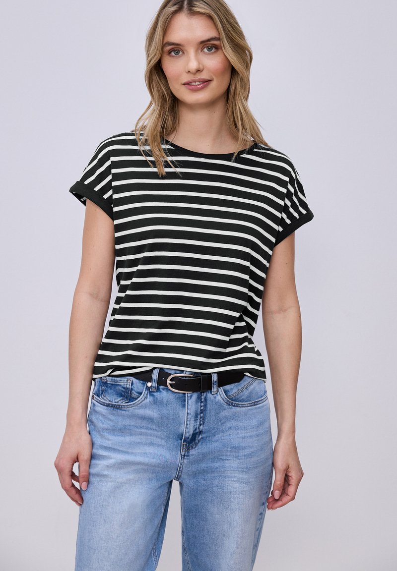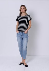 Dropped Shoulders - Round neck - Striped pattern - - modal blend - T-shirt imprimé - black