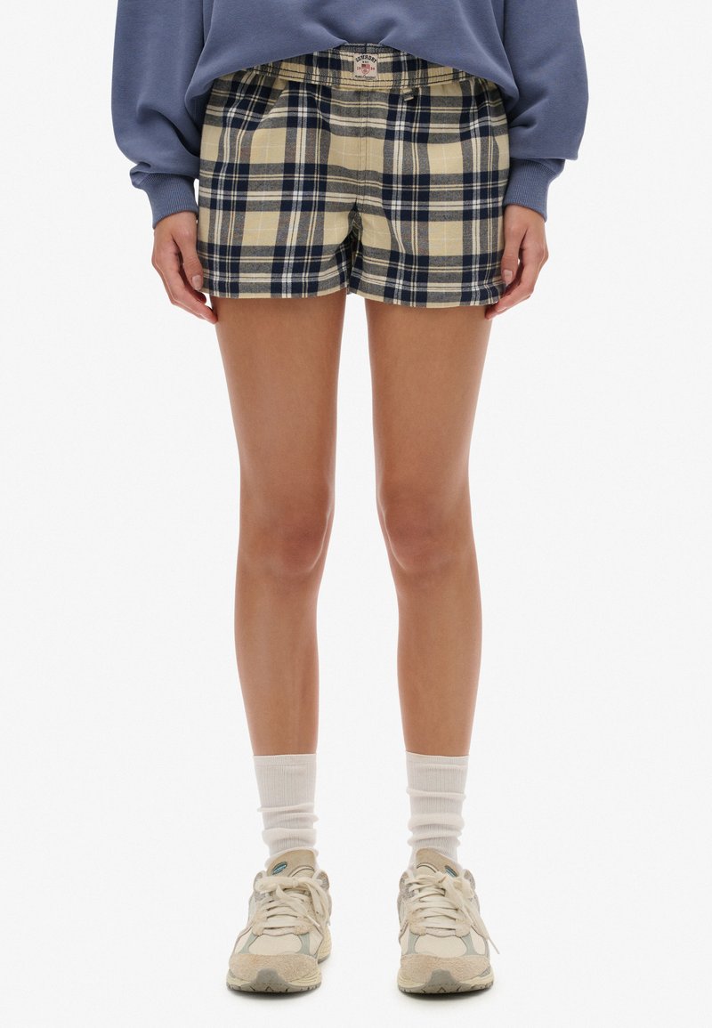 CHECK ELASTIC - Short - cream navy check