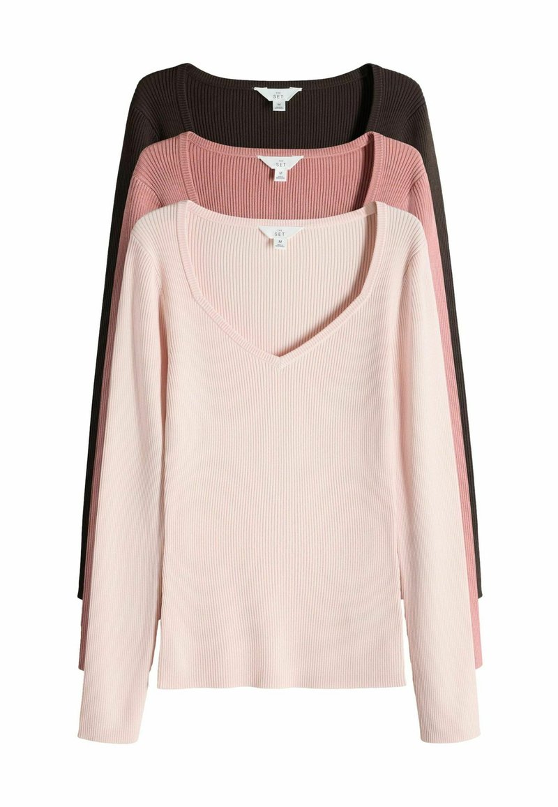 REGULAR FIT 3 PACK LONG SLEEVE - Pullover - pink/chocolate brown