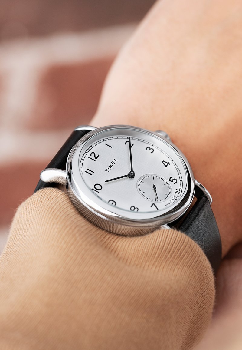 Avec son attention minutieuse aux détails, la Timex Standard brille comme l'une de nos montres quotidiennes les plus raffinées. Cette montre est conçue dans un esprit de polyvalence, réunissant des éléments classiques et des matériaux modernes, notamment un bracelet en cuir noir facilement interchangeable fabriqué à partir de peau de pomme recyclée. Le magnifique cadran argenté brossé verticalement, la petite seconde traditionnelle et les index arabes lisibles apportent une touche d'inspiration nautique et militaire à votre montre décontractée préférée.