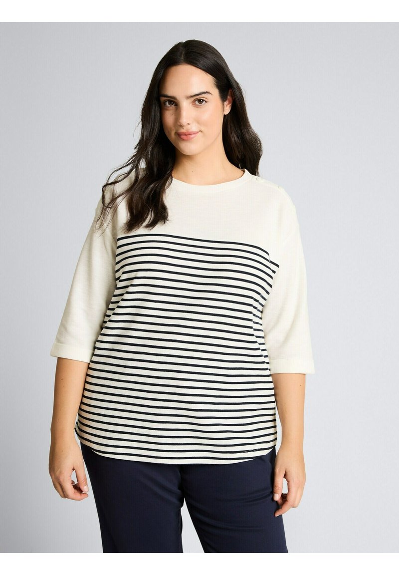 PLUS SIZE - MIT STREIFENMUSTER - T-shirt à manches longues - offwhite navy blue stripe