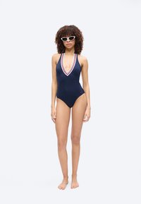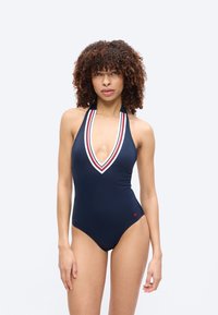 GLOBAL STRIPE PLUNGE HALTERNECK SWIMSUIT - Maillot de bain - dark night navy