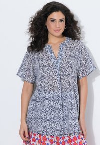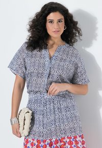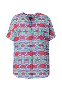BLUSE, GEMUSTERT, ZIERFALTE, STEHKRAGEN, HALBARM - Blouse - aubergine