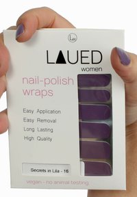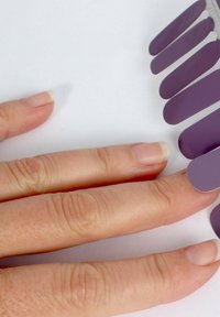 Commencez par retirer le film de protection transparent ainsi que la bande centrale des foils. Vous pourrez ainsi retirer plus facilement les différents foils pour ongles. Sélectionnez le foil adapté à votre ongle. Placez-le ensuite au centre de votre ongle et appuyez légèrement sur le bas de l’ongle. Le foil ne doit pas coller à la peau. Tirez le foil vers le haut en le soulevant légèrement pour qu’il repose bien à plat sur l’ongle. Ensuite, lissez le foil du centre de l’ongle vers les bords pour éliminer les poches d’air. Coupez le foil au ras de la pointe de l’ongle, le plus simple étant d’utiliser des ciseaux. À l’aide d’une lime à ongles, limez l’excédent de foil en suivant la forme de l’ongle.